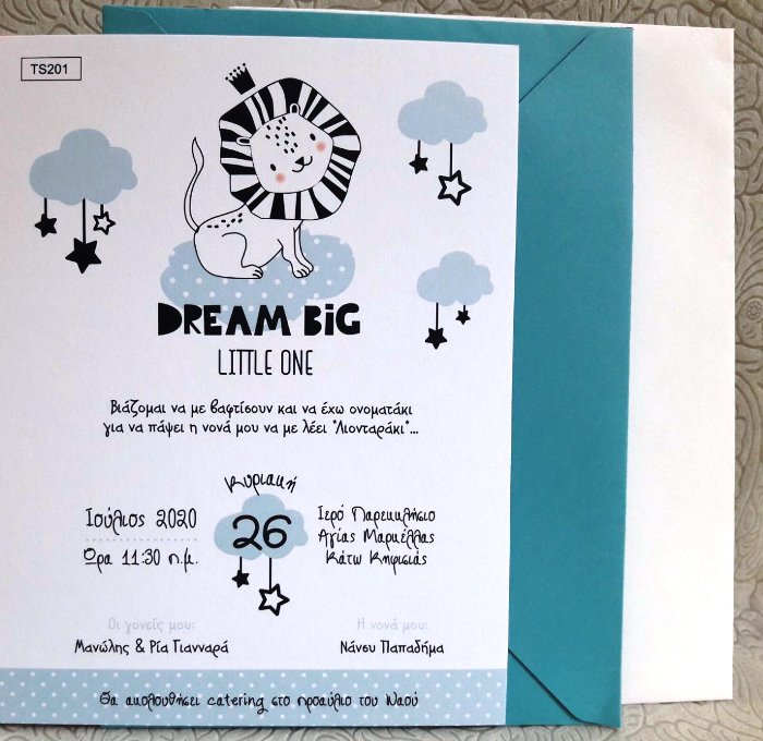 Προσκλητήριο βάπτισης για αγοράκια Dream Big!