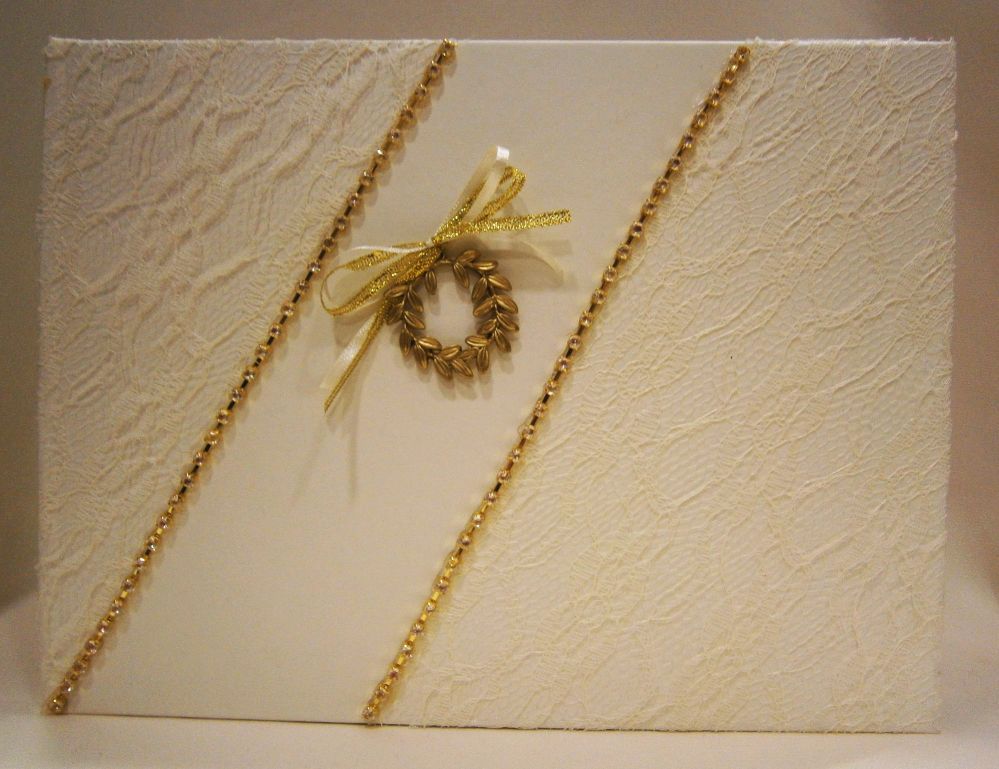 Ευχολόγιο Γάμου WWB1530, διακοσμμένο με χρυσό στεφανάκι και ιβουάρ δαντέλα.