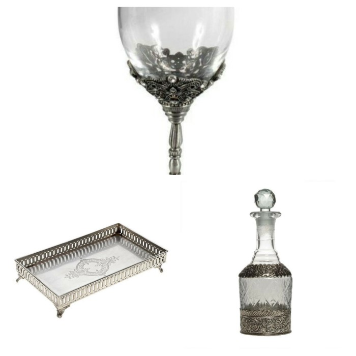 Σετ καράφα δίσκος και ποτήρι γάμου με vintage με παλαιωμένο ασήμι και strass.Όμορφο σετ γάμου vintage που στολίζει την ημέρα του γάμου σαςι.